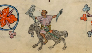 "I just don't understand," my friend who posted the headlines argued, "how you can sit there and say there's no cause for alarm or that these are okay messages to be broadcasting." Well, in a word: because I'm a medievalist--and can hear the echo in her words. "Verba vana aut risui apta non loqui," the Rule of St. Benedict intoned. "[Monks ought] not to speak useless words or words that move to laughter.... The tenth degree of humility is that the monk be not ready and quick to laugh, for it is written, 'The fool lifts up his voice in laughter' (Ecclesiastes 21:23)." Because, of course, as every schoolchild knows, monks, more particularly, medieval monks, were utterly joyless, not to mention the whole of the Middle Ages in which they lived. The great Italian medievalist Umberto Eco wrote a whole book about it, more accurately, a novel, in which (spoiler alert!) the blind librarian of a (fictional) Benedictine monastery was willing to kill so as to assure that the monks never even laughed, never mind spent their days ornamenting the margins of their books with the marvelous creatures for which medieval manuscripts are still sometimes famous but which he himself could not see.